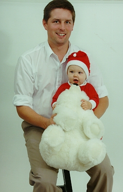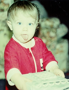 November 1998 (with our new camera :-) Chris and Klea - just before her bedtime! Another Bedtime PIC Klea outside in her new cat snowsuit More outside She is SO cute! With Shelby! With her first keyboard